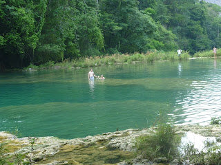 So, a couple things I didn´t mention about our trip. While in Semuc Champey, we met a zoologist, Australian named Rossy that was possibly the coolest person ever. He has been traveling for four months. He started at the tip of Chile, gone through all of South America, is now in Central America and will end up in New York....all on a motorbike. He takes each day as it presents itself and doesn´t make plans, so that when his plans change, there will be no disappointment. It was fascinating to me. He had such a positive outlook on life. Ben and I couldn´t stop asking him questions. Then, when at the Rio Dulce, we met a Swiss couple that had recently retired that have been traveling for over a year-starting in the states and will end up in South America. They travel a little more luxurious than Rossy by renting cars and what not. They plan to be away from home and their family for over two years. So, why do I tell you these things? First, so that I don´t look quite as crazy to my Mom and Dad and second, because it was thrilling to be around people that have such a desire to experience new things.